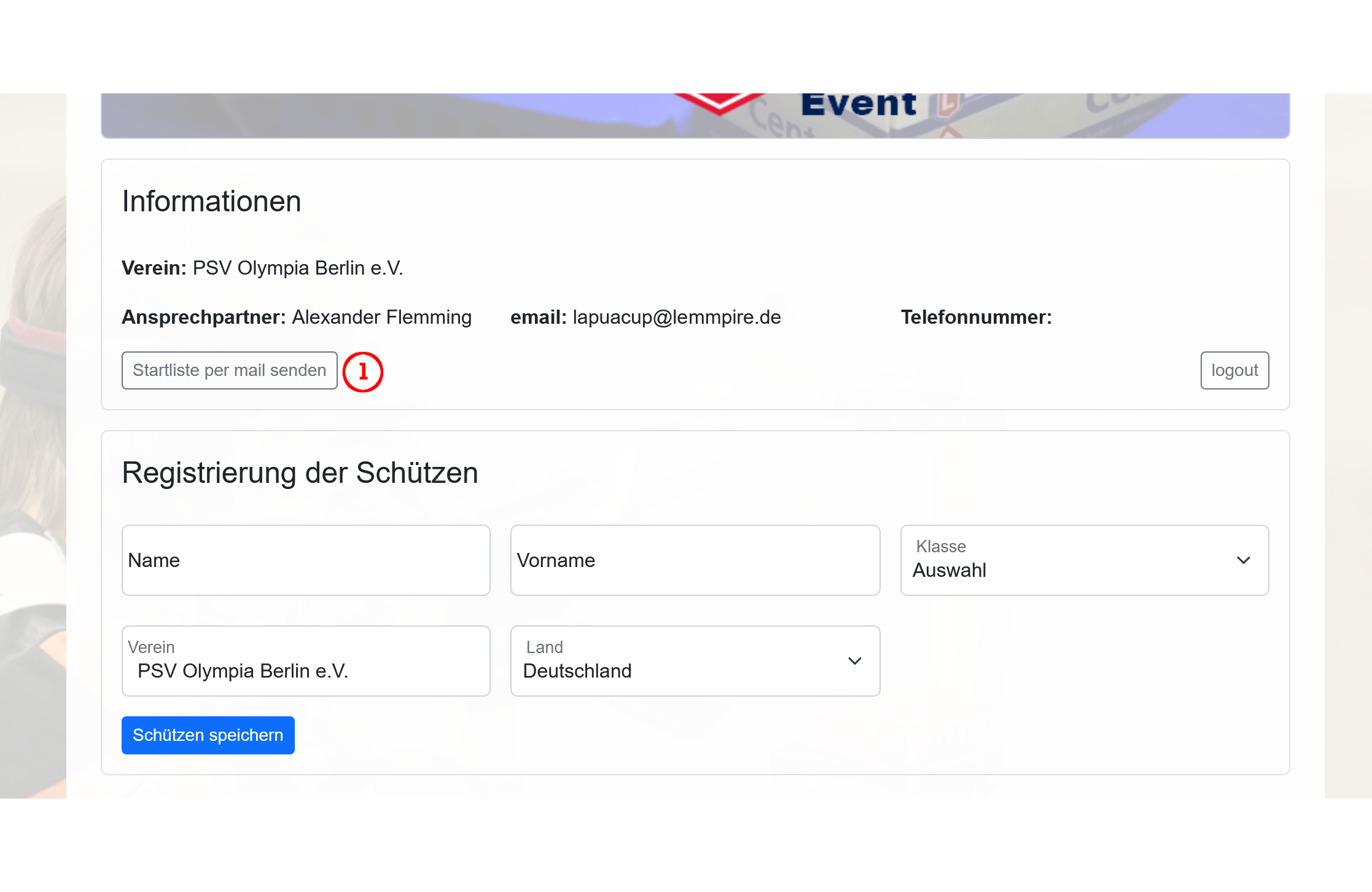 Sollten keine Informationen angegeben werden, wird nur der Name und email des Ansprechpartners verwendet. Diese Informationen können im nachhinein bei der Registrierung der Schützen noch geändert werden.